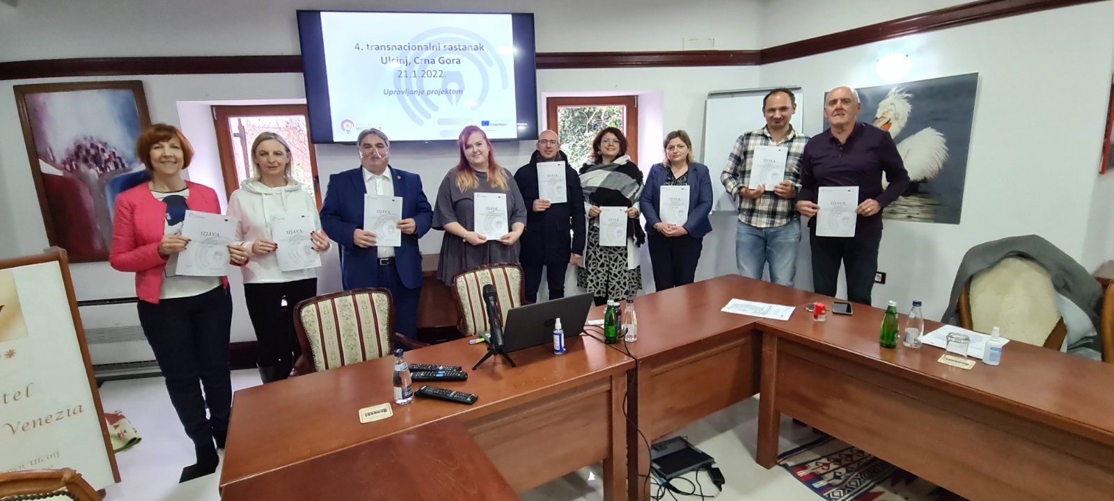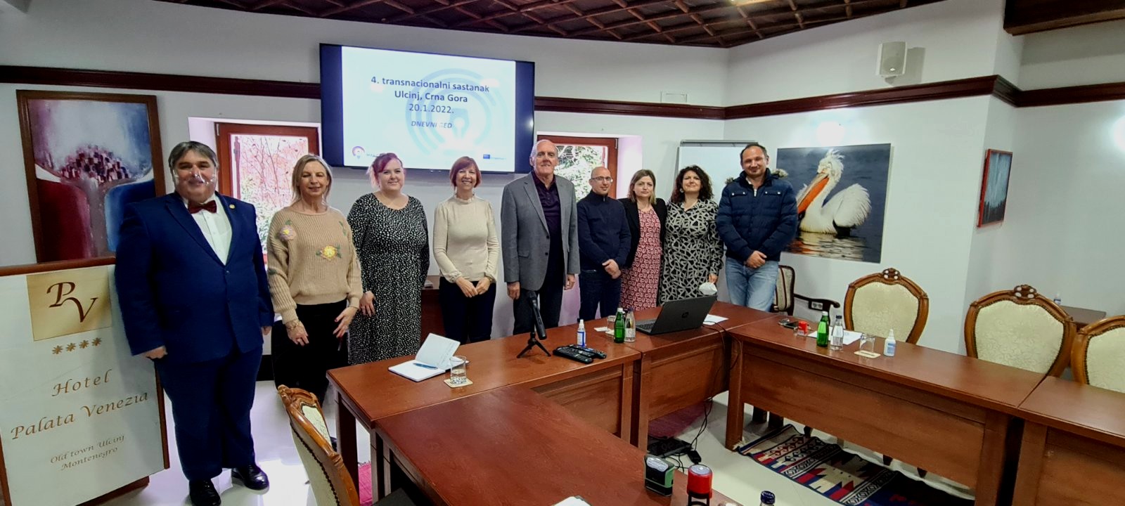 Од 19 до 21 јануари 2022 година, во Улцињ, Црна Гора се одржа 4-та транснационална средба на партнери. Првиот ден од средбата беше посветен на работата поврзана со креирање на нови испитни прашања и програми за магистерски испити, резултати и размена на искуства на партнери во процесот на креирање прашања и програми. Темата на вториот ден беше изработка на онлајн платформа за подготовка и полагање магистерски испити, особено проблемите на кои се сретнаа партнерите при внесување прашања и начините на кои ги решаваа истите тие проблеми. На ист начин, партнерите го споделија искуството од првото спроведено пилотирање и плановите за пилотирање на платформата до крајот на проектот. Третиот ден беше посветен на темите за проектен менаџмент, дисеминација со посебен акцент на организација на настани со мултипликативен ефект и договор за следните активности како што проектот се приближува кон неговото завршување.